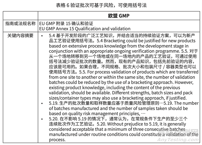 1)驗證都要在注冊遞交前完成,而歐美低風險產(chǎn)品和工藝可在上市前完成。(詳見表格 5)