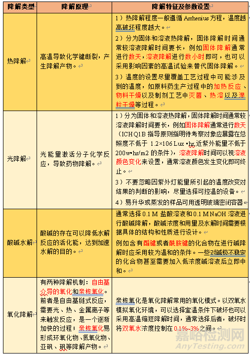 強制降解條件主要包括高溫、光照、酸/堿水解、氧化對于易吸濕的樣品還應(yīng)考慮高濕的影響。