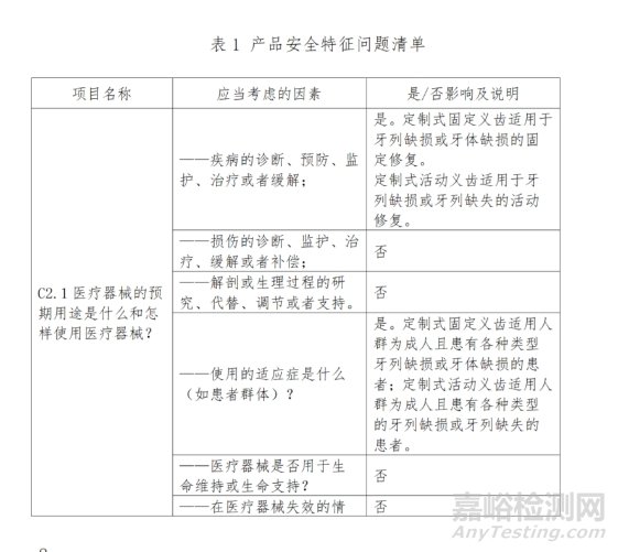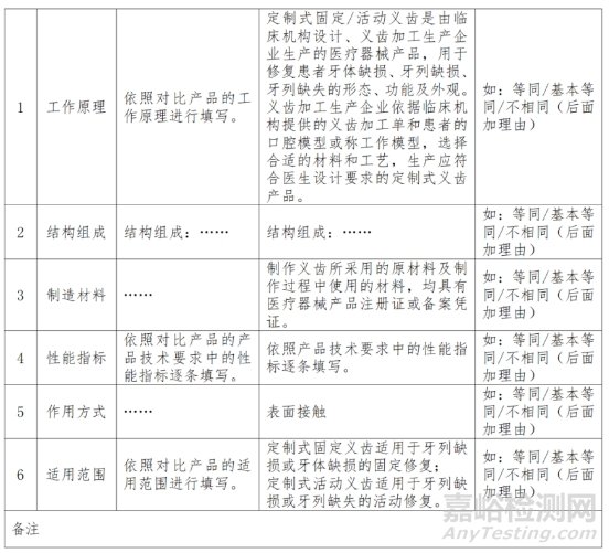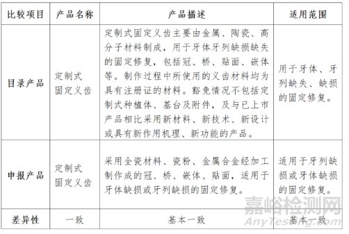 (1)申報產(chǎn)品相關信息與《目錄》所述內(nèi)容的對比;如定制式固定義齒