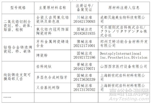 申請人應列表明確使用主要原材料名稱、型號規(guī)格、注冊證/備案憑證及原材料注冊人信息等內(nèi)容,舉例詳見表1。