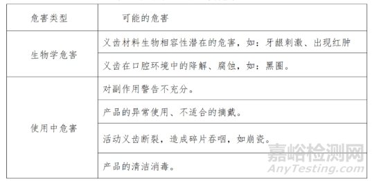 表3 義齒產(chǎn)品的主要危害