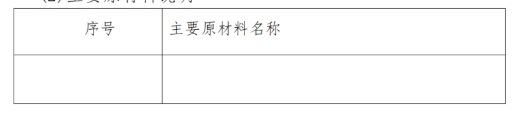 注:申請人根據(jù)申報規(guī)格型號的主要原材料依次填寫上表。