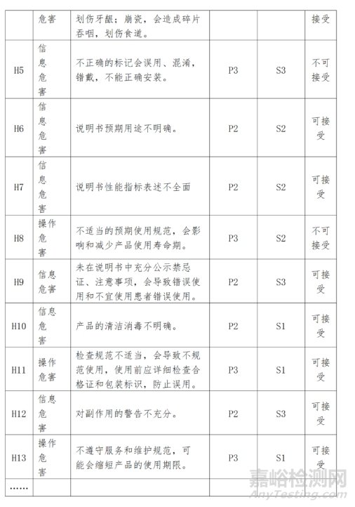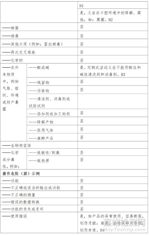 產(chǎn)品風險管理資料是對產(chǎn)品的風險管理過程及其評審的結(jié)果予以記錄所形成的資料。定制式義齒應按照 YY/T0316-2016《醫(yī)療器械 風險管理對醫(yī)療器械的應用》進行風險分析、風險評價、風險控制、剩余風險可接受性評定等。在進行風險分析時至少應包括以下主要危害(見表3),申請人還應根據(jù)自身產(chǎn)品特點確定其他危害。