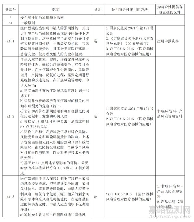 申請人可參考國家藥品監(jiān)督管理局《關于發(fā)布醫(yī)療器械安全和性能基本原則的通告》(2020 年第18號)進行編寫。《醫(yī)療器械安全和性能基本原則清單》舉例(見附件3)。