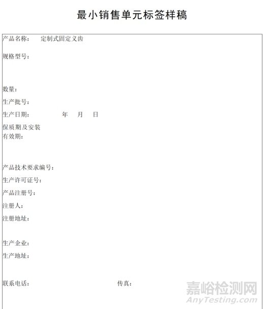 定制式固定義齒說明書和最小銷售單元標簽樣稿