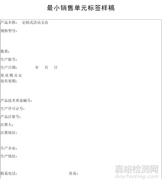 定制式活動義齒說明書和最小銷售單元標簽樣稿