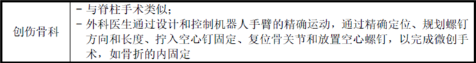 常見的骨科手術(shù)機(jī)器人以手術(shù)規(guī)劃和手術(shù)導(dǎo)航功能為主,可用于脊柱、關(guān)節(jié)或創(chuàng)傷手術(shù)中,國內(nèi)已有多個(gè)廠商的骨科手術(shù)機(jī)器人進(jìn)入臨床試驗(yàn)或商業(yè)化階段。