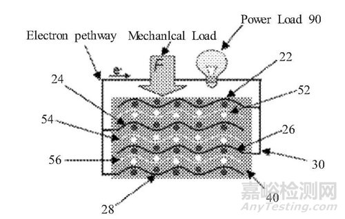 2011-2015年,U. S. ARL先后申請了多個結構電容器的專利。2011年首先申請了一類結構電容器專利(US7,864,505B1),專利中包括多種結構電容器設計,這些結構電容器的剛度可達到10 MPa~1000 GPa,斷裂強度1 MPa~10 GPa。其中一種采用聚碳酸酯增強的結構電容器電容最高可達575 pF。2013年,U. S. ARL發(fā)明了一種新型結構電化學電容器(US8,576,542B2),這種電容器由一對電極和固態(tài)電解質組成,能量密度不低于1 nJ/g。2015年,U. S. ARL申請了一種結構電化學電容器的設計方法(US9,190,217B2),系統(tǒng)的對改進結構電化學電容器的方法進行了總結。