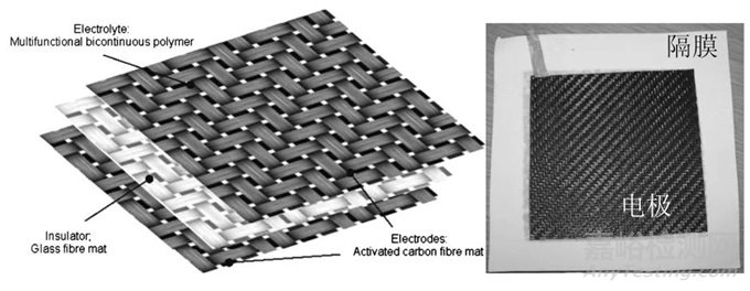 英國帝國理工大學(簡稱ICL)在結構/儲能一體化復合材料方面的研究更加工程化,已經(jīng)取得了一定工程化應用研究成果。ICL采用改性碳纖維材料設計了一種結構/儲能一體化復合材料超級電容器。并與Volvo公司合作,首次將結構/儲能一體化復合材料應用于汽車結構中,在減重的同時實現(xiàn)了儲能功能。