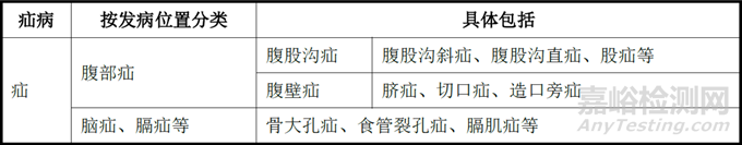 疝病按發(fā)病位置分類列示如下: