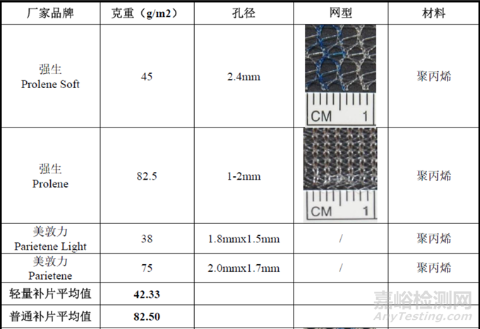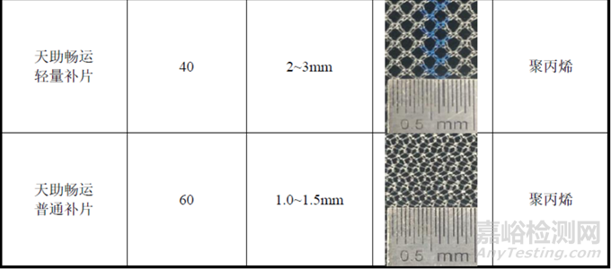 2012 年,Andrea Coda 等人比較了強(qiáng)生、美敦力、碧迪醫(yī)療、天助暢運(yùn)等公司的聚丙烯輕量補(bǔ)片和聚丙烯普通補(bǔ)片的克重?cái)?shù)據(jù);2017 年,Savannah Est 等人比較了強(qiáng)生、美敦力、碧迪醫(yī)療、天助暢運(yùn)等公司的聚丙烯輕量補(bǔ)片和聚丙烯普通補(bǔ)片的網(wǎng)型結(jié)構(gòu);2018 年,Noor Sanbhal 等人比較了強(qiáng)生、美敦力、碧迪醫(yī)療、天助暢運(yùn)等公司的聚丙烯輕量補(bǔ)片和聚丙烯普通補(bǔ)片的孔徑數(shù)據(jù)。天助暢運(yùn)的對(duì)應(yīng)產(chǎn)品與上述文獻(xiàn)中強(qiáng)生、美敦力、碧迪醫(yī)療產(chǎn)品的指標(biāo)對(duì)比情況如下: