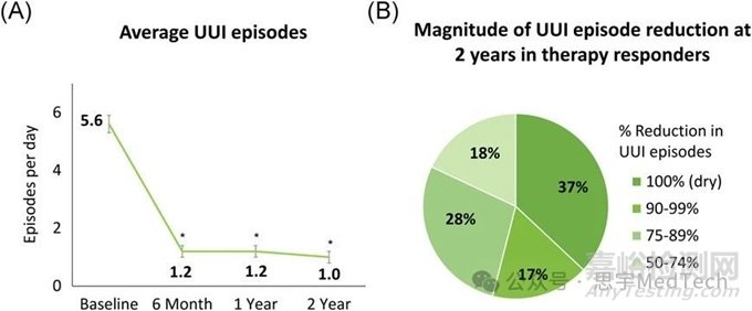 54%的參與者減少了90%以上,37%實現(xiàn)完全尿控。