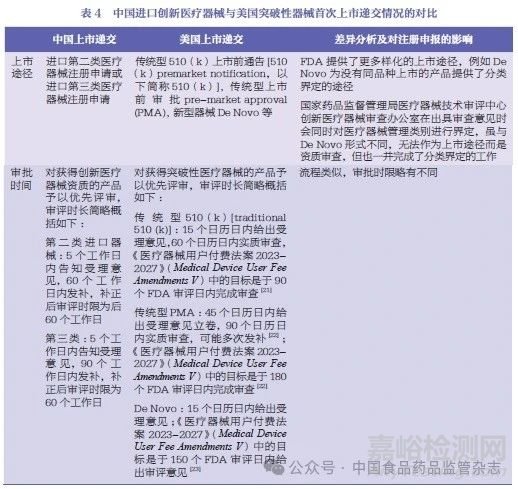 完成臨床試驗(yàn)并撰寫遞交所需相關(guān)資料后,即可進(jìn)行上市申請(qǐng)遞交。我國(guó)與美國(guó)創(chuàng)新產(chǎn)品的上市路徑及流程類似,審評(píng)時(shí)限略有不同,具體對(duì)比見表4。