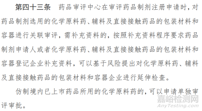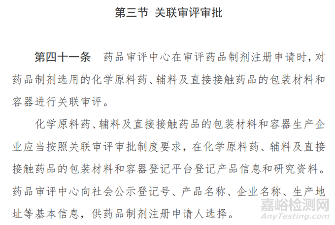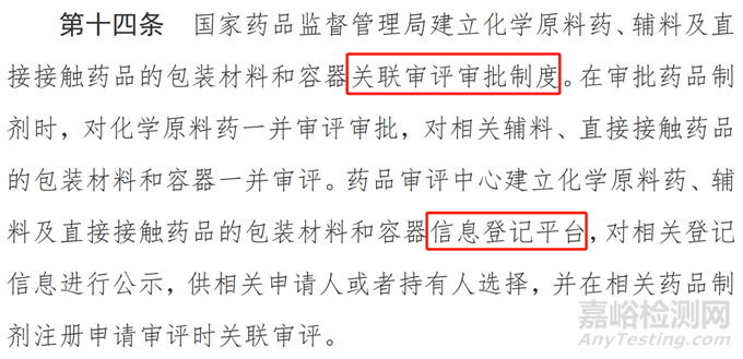 1)雖沒有關(guān)聯(lián)審評審批的明確字眼,但實(shí)質(zhì)內(nèi)容已明確:原料藥在制劑審批時(shí),一并進(jìn)行審評審批;藥用輔料和藥包材在制劑審批時(shí),一并進(jìn)行審評,無需審批。