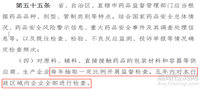 解讀:明確監(jiān)管機(jī)構(gòu)為省局級別;監(jiān)管對象包括原輔包供應(yīng)商、生產(chǎn)企業(yè);監(jiān)管類型包括日程監(jiān)督檢查和必要的延伸檢查。