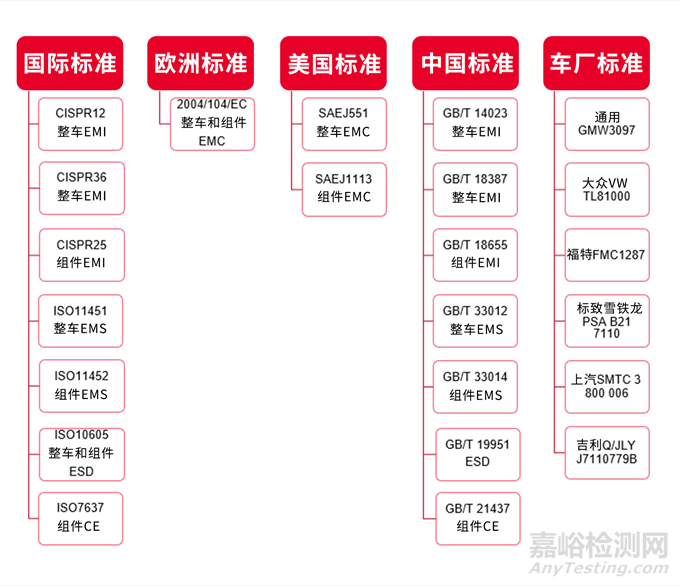 整車 EMC 測試標(biāo)準(zhǔn)大致如下: