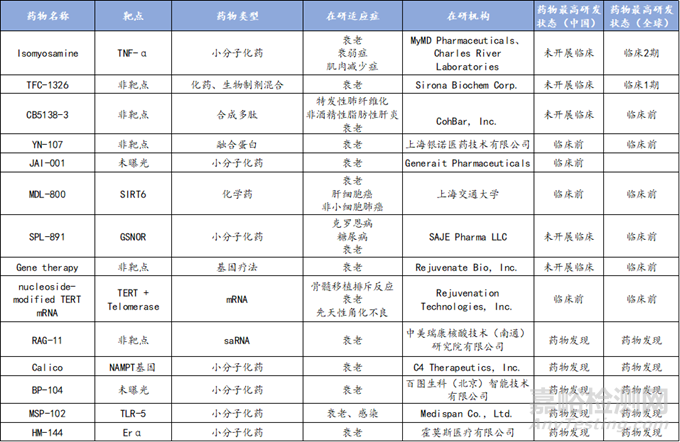 表1.全球在研抗衰藥物