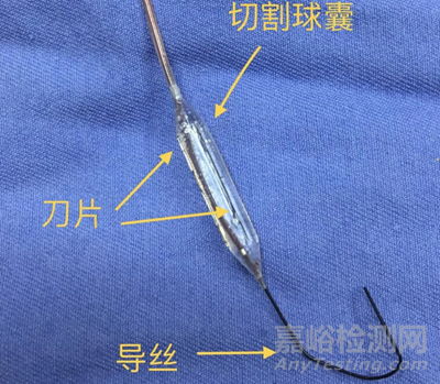 切割球囊由3-4片尖銳金屬刀片縱向安裝在非順應(yīng)球囊表面,球囊擴張的同時可對血管病變部位進行切割。