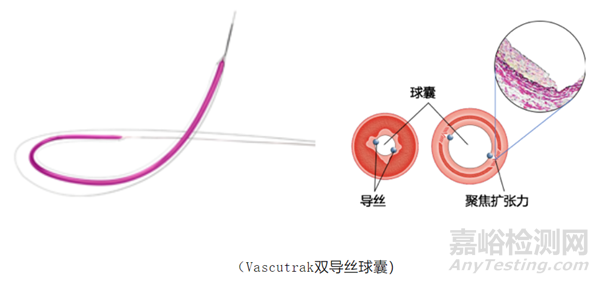 VascuTrak雙導(dǎo)絲球囊在2015年進入到中國市場,其獨有的外部集成導(dǎo)絲配合快速交換導(dǎo)絲能夠在血管壁的兩側(cè)的縱軸方向上產(chǎn)生聚焦擴張作用,保證擴張的低壓、安全和有序。外周雙導(dǎo)絲球囊的出現(xiàn)的從設(shè)計上解決了原有PTA球囊擴張的兩大問題,一是擴張不充分造成的彈性回縮和殘余狹窄,二是擴張過度導(dǎo)致的限流性夾層形成。