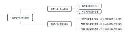 如圖1所示,使用場景是指注冊申請人所規(guī)定的醫(yī)療器械實際使用的場景因素,包括使用環(huán)境和操作任務(wù)。使用環(huán)境是指用戶操作醫(yī)療器械的實際環(huán)境,又可分為使用場所、環(huán)境條件,其中使用場所包括門診室、急診室、手術(shù)室、病房、救護車、家庭、公共場所等情況,環(huán)境條件包括空間、照明、溫度、濕度、氣壓、潔凈度、噪聲、振動、輻射等情況。操作任務(wù)是指用戶操作醫(yī)療器械以實現(xiàn)特定目標(biāo)的行動或行動序列,本指導(dǎo)原則重點關(guān)注醫(yī)療活動相關(guān)操作任務(wù),暫不考慮清潔、運輸、安裝、維護、維修、處置等操作任務(wù)(醫(yī)療器械安全標(biāo)準(zhǔn)若有相應(yīng)要求除外),待時機成熟時納入考量。不過注冊申請人需考慮全部操作任務(wù)的可用性要求。