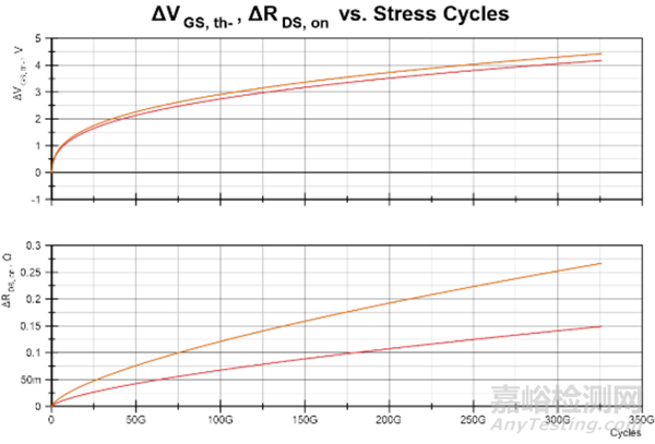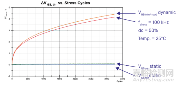 圖3:動(dòng)態(tài)和靜態(tài)柵極應(yīng)力測(cè)量結(jié)果的比較。