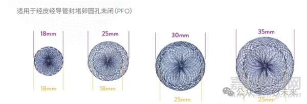 在不可降解型封堵器方面,雅培公司的Amplatzer PFO封堵器是目前應(yīng)用最廣的封堵器,可以封堵各種類型的PFO且操作簡單。其具有自膨脹的雙盤結(jié)構(gòu),外部支架由鎳鈦金屬合成,具有形狀記憶功能,內(nèi)部薄膜為聚酯織物補(bǔ)丁。適合于各種PFO解剖學(xué)特點的工程設(shè)計,產(chǎn)品完美貼合房間隔,同時裝置具有多種尺寸規(guī)格,治療范圍廣。Amplatzer PFO封堵器于2016年獲得FDA批準(zhǔn)上市,2021年在我國獲批上市。