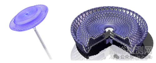 (4)右盤倒扣設(shè)計,緊密貼合心房:Talisman封堵盤右盤呈現(xiàn)倒扣形狀設(shè)計,植入后更加貼合房間隔,更加容易內(nèi)皮化。