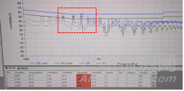 某款智能排插產(chǎn)品進(jìn)行傳導(dǎo)測試時,需要在9V/3A和20V/1.5A同時測試通過。輸出用滑動變阻器調(diào)節(jié)電流。測試結(jié)果顯示,該產(chǎn)品的電磁干擾超出了標(biāo)準(zhǔn)限制,具體超標(biāo)值為4.4dB。