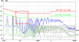 *藍(lán)色代表QP限值,綠色代表AV限值。