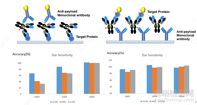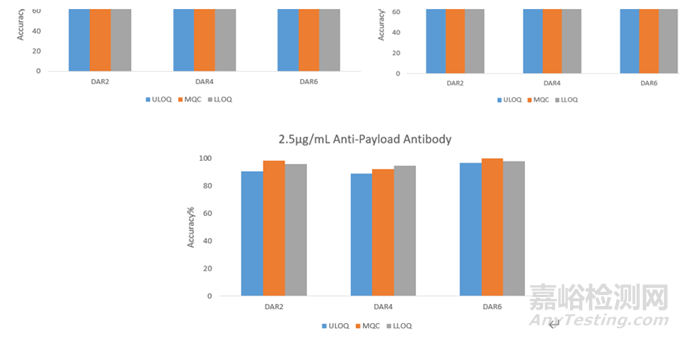圖4:ADC檢測中不同assay format下不同DAR值ADC樣品的回收率
