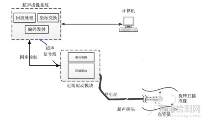 IVUS系統(tǒng)一般由三個(gè)部分組成:IVUS 探頭(即一次性超聲導(dǎo)管)、探頭運(yùn)動(dòng)與回撤系統(tǒng)(即馬達(dá))和超聲成像主機(jī)(包括主機(jī)安裝軟件)三個(gè)部分構(gòu)成。