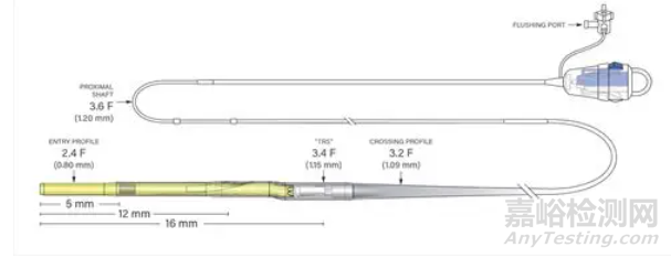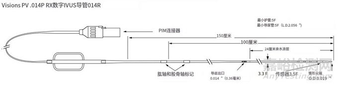 1.0.014"和0.018"導(dǎo)絲兼容;2.最大成像直徑24毫米;3.135厘米工作長(zhǎng)度