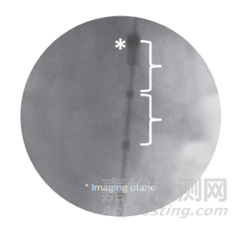 2.有墨跡的記號(hào)筆:在近端軸上相距1cm拔出IVUS導(dǎo)管,近端軸上具有外部墨跡,以便于長(zhǎng)度評(píng)估。