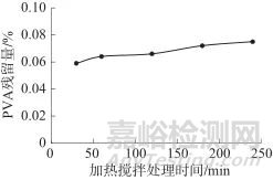 Fig.3 PVA residual amount under different heating and stirring treatment times