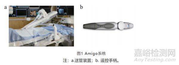 Amigo用于血管介入電生理治療的遠(yuǎn)程導(dǎo)管系統(tǒng)。Amigo系統(tǒng)由一個(gè)安裝在電生理臺上的送管裝置和一個(gè)有線控制器組成 。Amigo不需要單獨(dú)的工作站,可以與現(xiàn)有的透視技術(shù)結(jié)合確定導(dǎo)管位置并通過控制器操作導(dǎo)管。Amigo是一個(gè)開放式平臺,能夠兼容現(xiàn)有的商用導(dǎo)管,降低了使用成本。導(dǎo)管被放置在擴(kuò)展底座內(nèi),介入醫(yī)生可以通過控制器在30m外進(jìn)行控制??刂破骺梢詫?shí)現(xiàn)導(dǎo)管插入、回撤和旋轉(zhuǎn)以及導(dǎo)管頂端偏轉(zhuǎn)。通過控制器的前進(jìn)、后退按鈕可以控制滑軌的前進(jìn)和后退,從而實(shí)現(xiàn)導(dǎo)管的插入與回撤,導(dǎo)管運(yùn)動速度為每秒13mm,最小控制精度為1.6mm。介入醫(yī)生旋轉(zhuǎn)控制器的最前端旋鈕實(shí)現(xiàn)轉(zhuǎn)臺的旋轉(zhuǎn),帶動導(dǎo)管進(jìn)行 360° 旋轉(zhuǎn)。旋轉(zhuǎn)控制器中間的旋鈕可以實(shí)現(xiàn)導(dǎo)管的遠(yuǎn)端彎曲