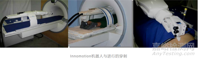 Innomotion是一款氣動機(jī)器人,完全與磁共振兼容,可在磁共振內(nèi)部提供精確的穿刺。該機(jī)器人有6個(gè)自由度,可以固定在核磁系統(tǒng)上。該裝置經(jīng)過優(yōu)化,可用于狹小的磁共振和CT環(huán)境。最初的系統(tǒng)較為簡單,僅可提供位置引導(dǎo),即機(jī)器人向醫(yī)生指示穿刺位點(diǎn)和針取向,不能進(jìn)行實(shí)時(shí)引導(dǎo)和進(jìn)針。后續(xù)系統(tǒng)進(jìn)行了升級,增加自由度到7個(gè),并改善了驅(qū)動方式。