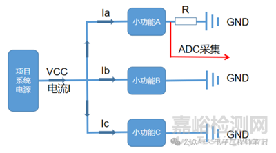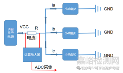檢測電機(jī)的工作電流,工程師需要確定項(xiàng)目中的電機(jī)是處于小功能A中的Ia,還是小功能B中的Ib,亦或是小功能C中的Ic,還是系統(tǒng)電源中的電流I。