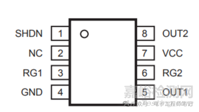 Pin 1引腳SHDN:芯片關(guān)斷控制引腳,高電平有效,即SHDN引腳為高電平時(shí),芯片不工作;