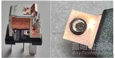 經(jīng)排查發(fā)現(xiàn)是高速風(fēng)扇繼電器輸出端始終有電壓,通過拆解發(fā)現(xiàn)繼電器的動(dòng)靜觸點(diǎn)因高溫熔融,從而導(dǎo)致觸點(diǎn)黏連失效。