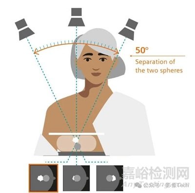 在層析成像中,X射線管以 50° 廣角圍繞乳房移動,這是目前市場上產(chǎn)品能提供的最大角度。加上大約5秒的掃描時(shí)間,僅為過去所需時(shí)間的1/5,有助于提高病變檢出率。