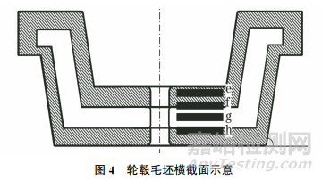 對(duì)鍛件來說,斷后伸長(zhǎng)率與鍛造變形方式密切相關(guān),與金屬鍛造流線有關(guān),平行流線(順流線)方向的斷后伸長(zhǎng)率最大,垂直流線方向的斷后伸長(zhǎng)率最小。YS-T 479—2005 《一般工業(yè)用鋁合金鍛件》和GJB 2351—1995《航空航天用鋁合金鍛件規(guī)范》中規(guī)定的順流線方向與非順流線方向的斷后伸長(zhǎng)率相差最大可以達(dá)到85%。輪轂底部的流線為放射狀,試樣a與流線完全平行,試樣b與流線形成一定角度,從c到d,試樣與鍛造流線的角度越來越大。因此,試樣a對(duì)應(yīng)的斷后伸長(zhǎng)率最大,由b到d依次減小。美國(guó)航空航天材料標(biāo)準(zhǔn)規(guī)定,試樣軸線與鍛造流線的夾角不能超過15°。綜合分析可知,圖3中取樣位置a滿足正確的徑向取樣規(guī)則,其余位置均不符合要求,檢測(cè)結(jié)果也不能正確反映機(jī)輪輪轂鍛坯徑向的性能。