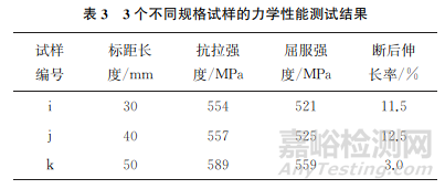 2.4 拉伸試樣規(guī)格對(duì)檢測(cè)結(jié)果的影響
