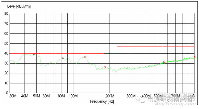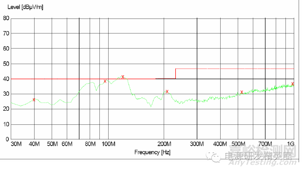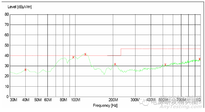 下圖為H方向的曲線,可以看到100-120MHz段還有超標(biāo)的情況。