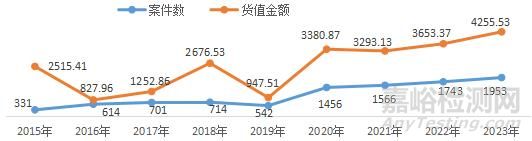 圖 2-6 2015-2023 年醫(yī)療器械案件數(shù)及涉及物品總值