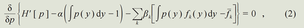 其中α和β1, β2,?是拉格朗日乘子分別對(duì)應(yīng)歸一化約束和關(guān)聯(lián)期望值的約束。上述方程的解即為“最優(yōu)”分布p*,