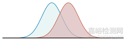 圖4 兩波包重疊(不正交),從系綜統(tǒng)計(jì)的意義上,如果波包中心位置間距離的尺度不小于波包寬度的尺度,那么這兩個(gè)波包可以被區(qū)分。從單次觀測(cè)的意義上,不論波包中心位置間距離的尺度是否大于波包寬度的尺度,只要兩個(gè)波函數(shù)不正交,則它們無(wú)法確定地被區(qū)分