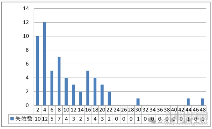 一個簡單的方法就是將產(chǎn)品的失效數(shù)據(jù)收集起來,畫出每個時間段產(chǎn)品失效的數(shù)和每個時間段開始時產(chǎn)品的數(shù)量。這里對計算不作太多的闡述,可以參考介紹可靠性的書籍。下圖是針對產(chǎn)品的失效數(shù)的統(tǒng)計,如果從數(shù)量上,我們可以看到產(chǎn)品失效數(shù)量隨著時間推移而逐漸降低。由于測試的產(chǎn)品數(shù)量足夠大,也就是說分母足夠大,我們就可以簡單的將這個圖看成是失效率的趨勢圖??梢钥吹疆a(chǎn)品在前面四個小時內(nèi)的失效率比較高,然后產(chǎn)品在24小時之后失效率趨于平穩(wěn),這就表明產(chǎn)品到這個階段早夭期基本結(jié)束了。這個時候做為一個可靠性工程師,我們可以建議生產(chǎn)部門通過早期的24小時老化將大部分有缺陷的產(chǎn)品篩選出來。因為即使再延長老化時間,我們已經(jīng)不能夠很有效的篩選出更多有缺陷的產(chǎn)品,雖然延長老化時間還是能夠篩選出一些失效的產(chǎn)品,但是這些失效時在后面時間里面長期隨機出現(xiàn)的,通過老化篩選已經(jīng)不是那么有效的工具。這是后我們需要做的就是通過分析大約24小時之后產(chǎn)品失效的原因,找到解決的辦法。只有通過對失效的分析,找到解決失效的方法,這樣才能夠有可能降低產(chǎn)品的失效率。