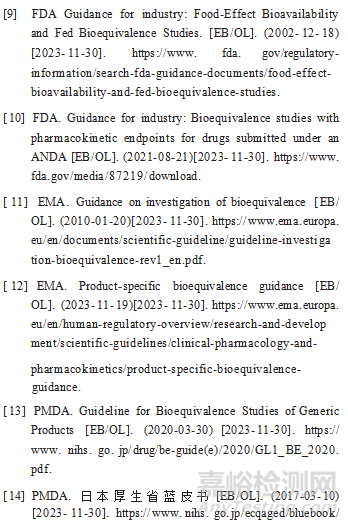 EMA作為歐盟官方藥 品監(jiān)管機(jī)構(gòu)之一,于2010年頒布《生物等效性研究指導(dǎo)原則》[11],對(duì)既往指導(dǎo)原則作了修訂與補(bǔ)充,增加了基于生物藥劑學(xué)分類系統(tǒng)的生物等效性研究豁免的相關(guān)規(guī)定;2013年6月開(kāi)始,陸續(xù)公布和更新《特定藥物的生物等效性指導(dǎo)原則》,截至2023年11月30日已累計(jì)發(fā)布特定藥物生物等效性指導(dǎo)原則77個(gè)[12],對(duì)具體藥物從生物等效性試驗(yàn)設(shè)計(jì)、受試者、生物藥劑學(xué)分類、檢測(cè)物質(zhì)、豁免原則和生物等效性性評(píng)價(jià)參數(shù)等方面 作了指導(dǎo)說(shuō)明。