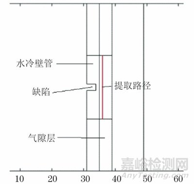 提取路徑設(shè)置在水冷壁管含缺陷部位上方1 mm處,路徑長度為20 mm,如圖4所示。