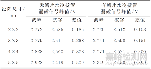 表3 有無鰭片水冷壁管漏磁信號(hào)峰谷值